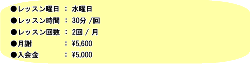 | ※金額は全て税別価格です。 ※別途教材費を頂戴致します。 ※レッスン時間は教室の入れ替わり時間を含みます。 ※入会金はご入会時のみです。 ※月謝、入会金、施設費のお支払いにクレジットカードはご利用いただけません。 |