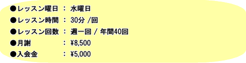 お子様からシニアまで年齢を問わずレッスンできます。 初心者の方も楽しみながら上達できるプログラムです。 月の途中からでもご入会可能です。 |